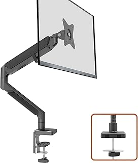 Support unique pour écran, bras articulé à vérin à gaz réglable Vesa, avec pince et base passe-câble pour écrans d’ordinateur LCD de 17 à 27”, le bras peut supporter de 2 à 6,5 kg