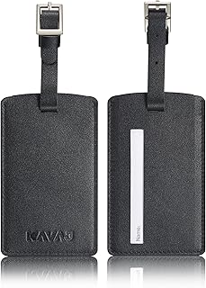 Étiquette à Bagages Venice en Véritable Cuir de Vachette en Noir Étiquette Adresse pour Bagage Vintage Idée Cadeau pour Femmes et Hommes