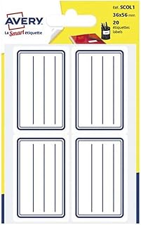 AVERY - Sachet de 20 étiquettes écolier lignées bleues, Format 36 x 56 mm,