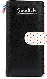 Portefeuille Femme À Pois Mignonne Boucle Fermeture éClair Grande Capacité Porte-Monnaie De Poche Bourse TéLéPhone Poche Bourse Sac à Main Faux Cuir (Noir)